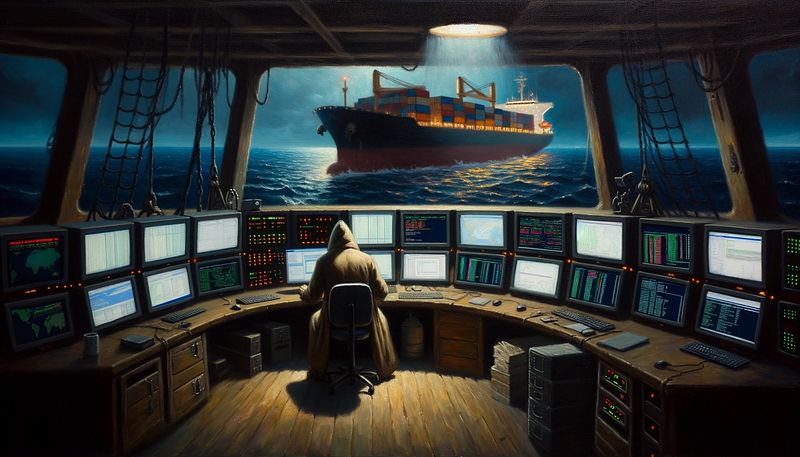 "In the digital depths of maritime cybersecurity, a lone sentinel monitors the flow of global trade, safeguarding against the unseen threats that lurk beneath the waves."